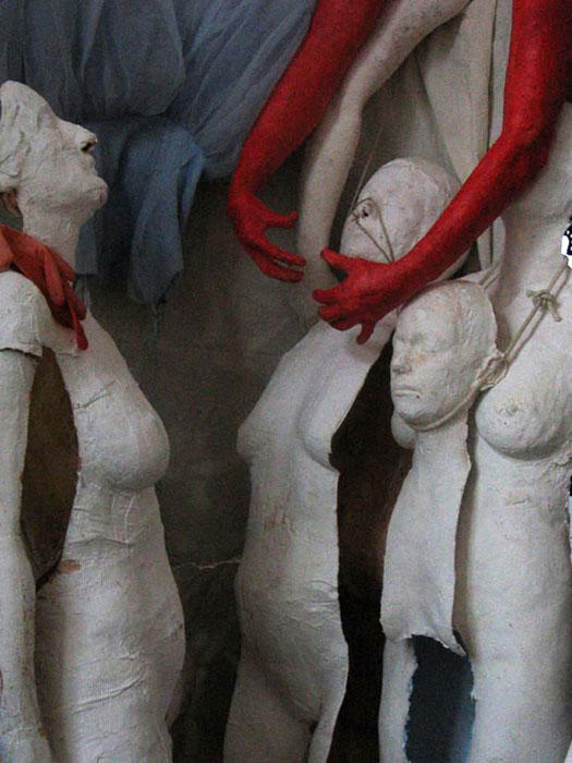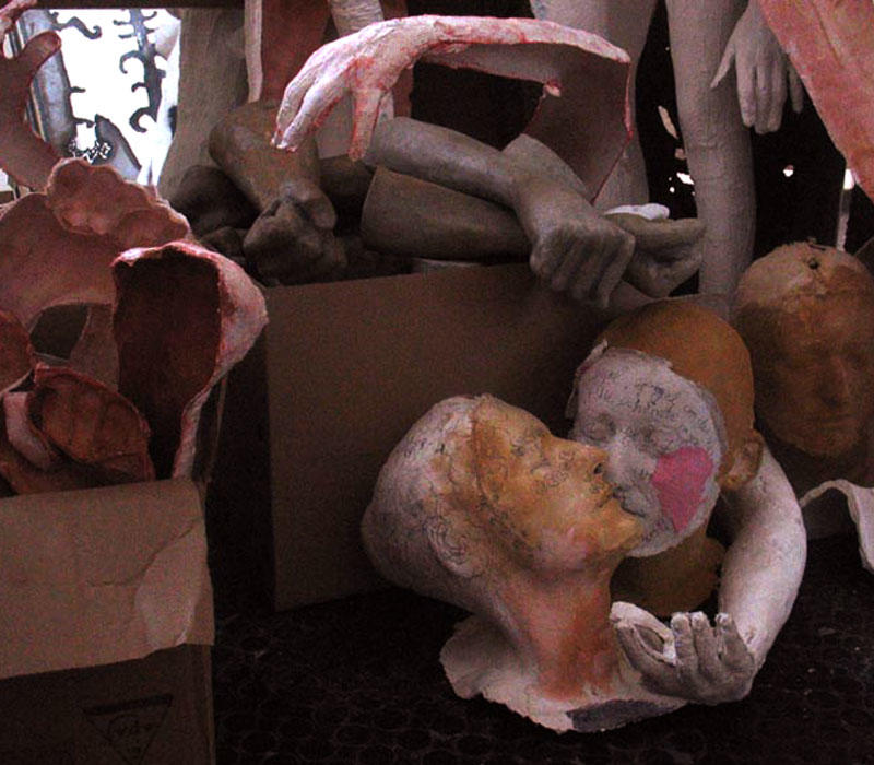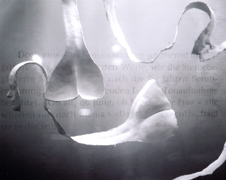„Dingfest“ ist eine Reihe von Skulpturen aus Papier – eine Zusammenarbeit von Kristine Tornquist und Vesna Tušek – die sich mit Körperbild und Fetisch beschäftigen. Dingfest wird gemacht was flüchten will, was vorhat, sich zu verbergen. Der lebende Körper, ein Reservoir an Zeit, bleibt nicht der, der er ist. Die laufende Veränderung ist Programm. Die Sehnsucht ist die Unsterblichkeit – Dinghaftigkeit. Doch gleichzeitig ist die Herstellung eines Fetisch ein Mord, in dem das Leben angehalten – dingfest gemacht – wird.