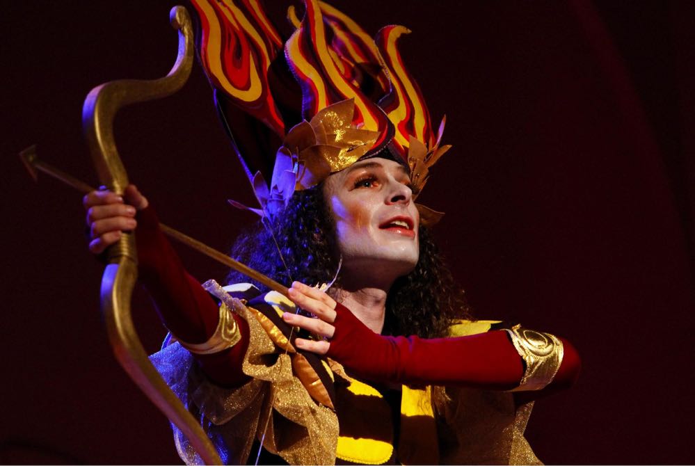 Das aufgeführte Werk ist eine sogenannte „Festa pastorale“. Hier werden vordergründig die Schönheiten der Göttin des Sonnenaufgangs, der Aurora, besungen – wer also irgendeine Art von fortlaufender Handlung erwartet, der wird enttäuscht sein. Im Prinzip kann man jederzeit in das Stück einsteigen und hat nichts versäumt – das ist aber dem Genre zueigen und soll in keinster Weise abfällig klingen. Trotzdem hatte dieses Stück auch einen politischen Hintergrund, der zu Beginn und zu Ende des Abends auch erklärt wird. Es war ein Geschenk der mit den Habsburgern verbündeten Venezianer an die Königin Elisabeth. Die Oper wurde in der Zeit des spanischen Erbfolgekriegs geschrieben und war im Prinzip nichts anderes als die Aufforderung, doch endlich einen männlichen Thronfolger zu gebären.