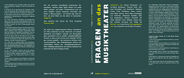 Das Buch Fragen an das Musiktheater (Herausgeber Kristine Tornquist / Jury Everhartz) erschien am 21.September 2012 als zweiter Band der Reihe Edition Theater von Angela Heide in der Edition Atelier und wurde beim Festival 13 präsentiert. Besonderen Dank an Dr. Irene Suchy, Dr. Wilhelm Sinkovicz und Dr. Sven Hartberger. Vorwort von Irene Suchy. Buchbesprechung von Stephan Lack und Interview mit den Intendanten der Freien Musiktheater in der GIFT 03/2013. Buchpräsentation und Diskussion ORF Zeitton 28.11.2012.