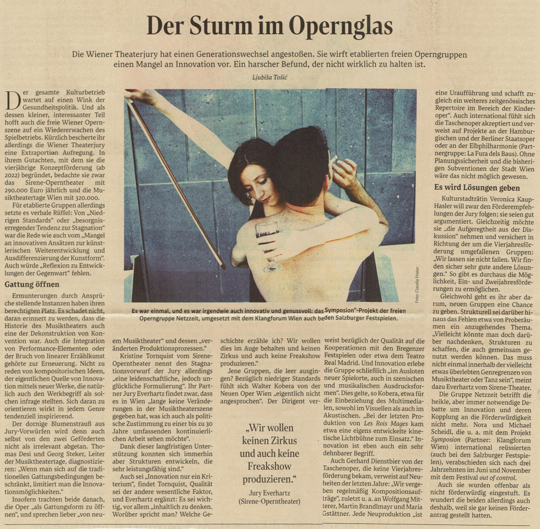 Musiktheater in Wien | SMart - Freie Szene in Wien | Fragen an das Musiktheater | Neue Musik und Freies Musiktheater in Wien | Volkmar Klien: Neue Musik | Erklärung der Vielen | Die Vielen | Der Opernkrach | Die Opernszene | Wer behauptet, die Oper läge im Sterben? | gift 03/13: Musiktheaterszene in Wien | Austrian Music Export | Independent Music Theatres | Vom Nutzen der Ortlosigkeit | Nutzung von Räumen in Wien | Im Jugendstiltheater | Opernszene 2021 | Konzeptförderung 2022-25